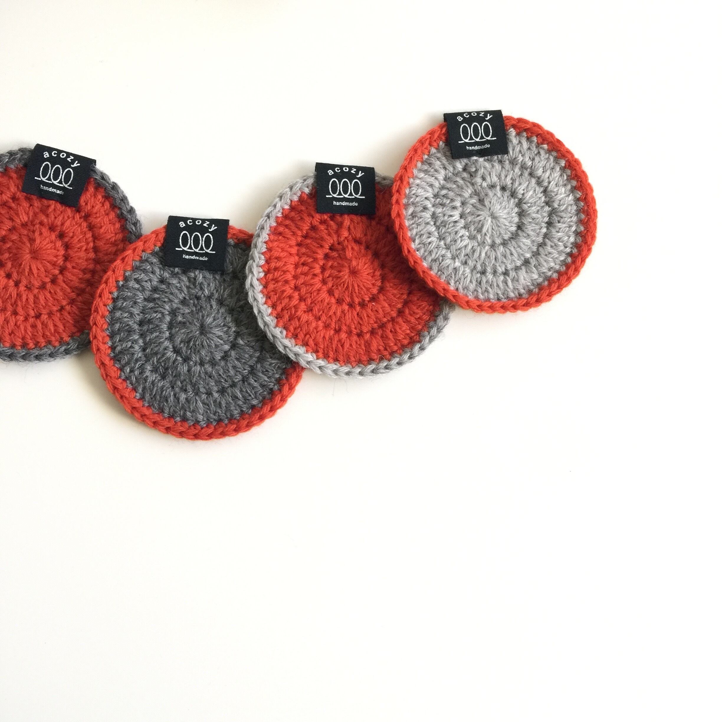 オレンジとグレー・薄グレーの3色を使った色違い4枚1セットとなっております。(バラ売りはありません。)